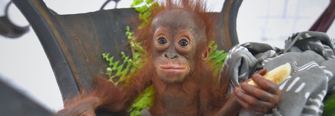 According to the local resident who found her, the infant orangutan was discovered on a road within an oil palm plantation. Out of compassion, the resident took her home and cared for two days before contacting the Central Kalimantan Natural Resources Conservation Agency (BKSDA) to surrender the protected animal.