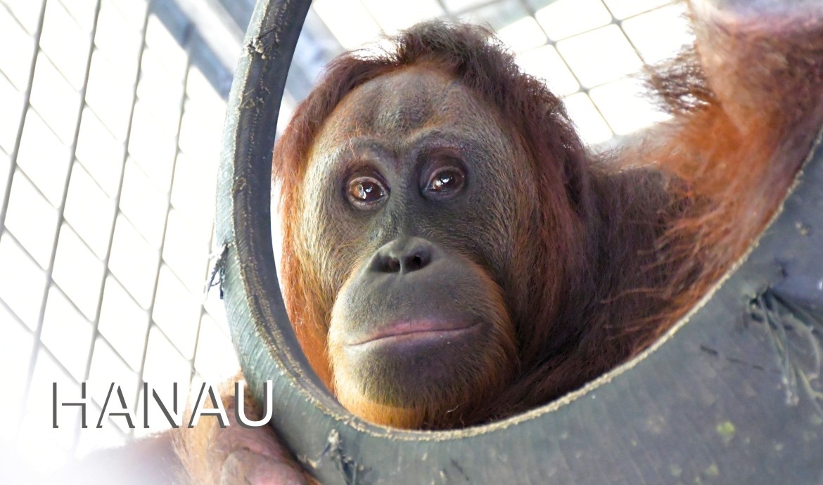 Hanau is a female orangutan rescued in Seruyan Regency. She arrived at the Nyaru Menteng Rehabilitation Center on December 22, 2008, after being illegally kept as a pet. At the time of her rescue, she was one year old and weighed two kilograms.