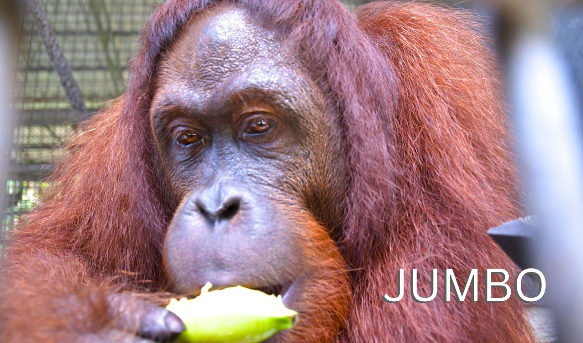 Jumbo is a male orangutan rescued from Hanau Village, Seruyan Regency, Central Kalimantan. He arrived at the Nyaru Menteng Rehabilitation Center on February 16, 2013, when he was just six months old, weighing 4.2 kilograms.
