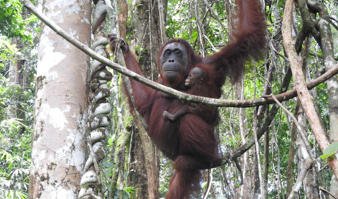 The ongoing decline in Bornean orangutan numbers is extremely worrying, thus we must strive harder than ever to save this Critically Endangered species. It always gives us hope, however, when we witness our reintroduced orangutans thriving in a natural forest habitat and producing a new generation. It is challenging for the orangutans to survive in their new, wild habitat, and stay safe from the dangers posed by both natural predators and humans. Therefore, to be able to raise two babies in the wild and give birth to a third is an extraordinary achievement – one which Cindy has absolutely nailed!