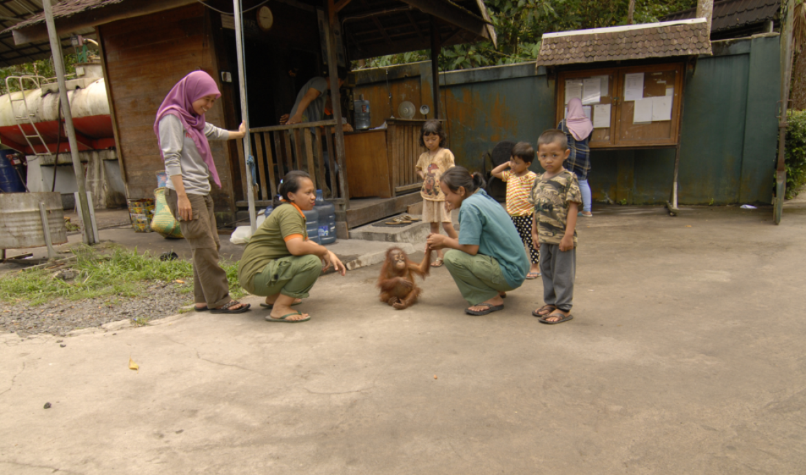 My owner, though, became more and more worried hearing about the orangutan slaughter cases on the television. He finally decided to give me to a policeman on duty at the Unggan Village Police Station to be submitted to the orangutan rehabilitation center at Nyaru Menteng, Palangka Raya.