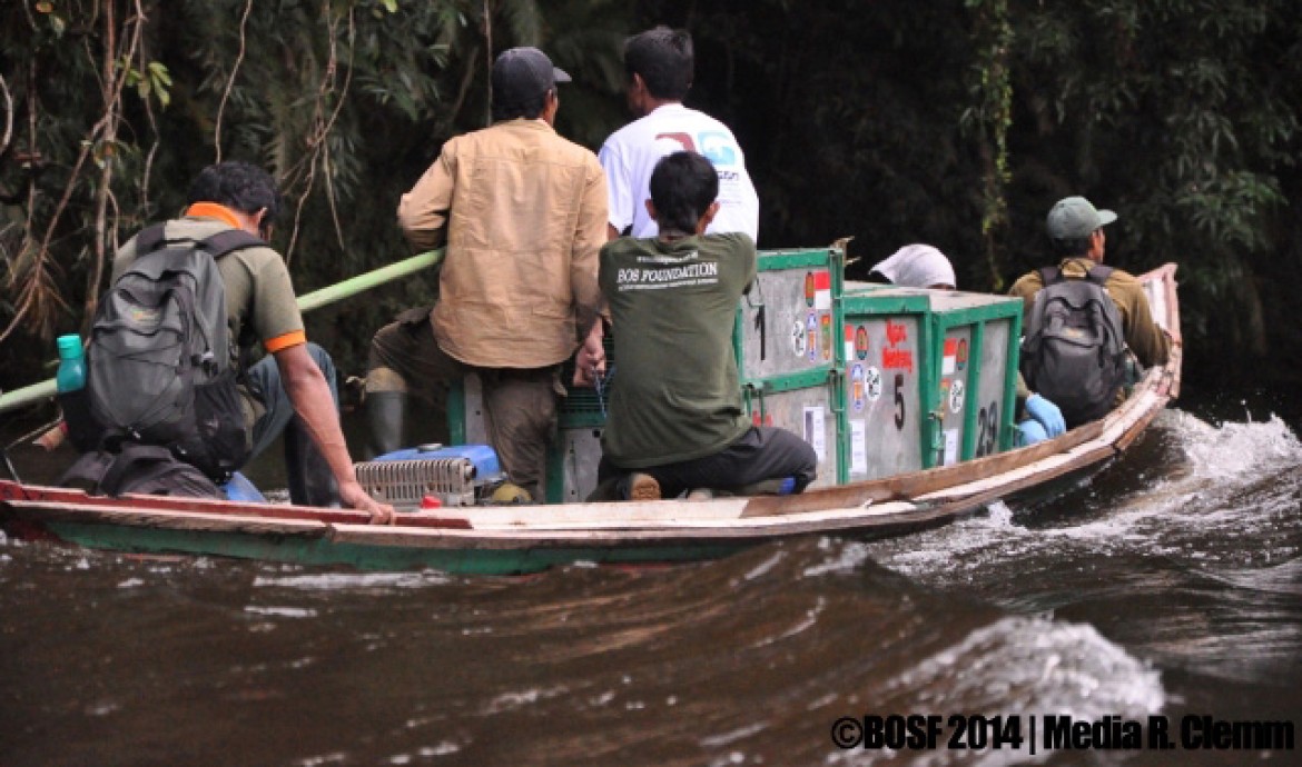 Doa kami dikabulkan. Cuaca sangat cerah dan panas hari ini. Tim telah siap di Drop Point sejak pukul 09.30 pagi. Trold, Bonita, Kiki dan anaknya yang berumur delapan tahun, Hardi akhirnya tiba. Mereka kemudian dikeluarkan dari slingload dan diangkut ke titik pelepasliaran yang sudah ditentukan, yaitu sekitar 600 meter menuju sungai.