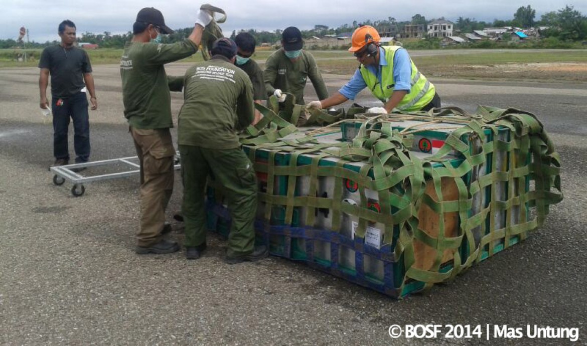 45 menit kemudian, pesawat Twin Otter sampai di Bandara Beringin di Muara Teweh. Kandang-kandang transport pun segera di bongkar dari pesawat lalu dipindahkan ke dalam jaring slingload yang telah disiapkan. Load Master, dibantu oleh tim pelepasliaran mempersiapkan kandang dan mengamankan slingload. Setelah pengecekan terakhir oleh drh. Meryl Yemima Gerhanauli, para orangutan siap untuk melakukan perjalanan terakhir mereka menuju Bukit Batikap.