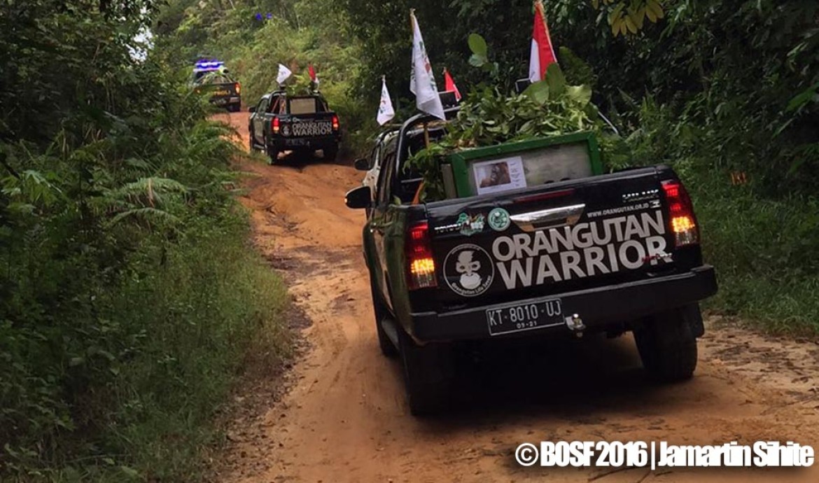 Pada pelepasliaran kali ini, hujan menemani tiap langkah perjalanan tim pelepasliaran orangutan. Hal itu membuat semua tim harus mengeluarkan ekstra tenaga untuk melalui kondisi jalan tanah yang basah dan licin. Beberapa kali semua tim harus bahu membahu menarik dan mendorong mobil untuk sampai ke “Jalan Buntu” atau titik terakhir di tepi Hutan Kehje Sewen, dari Muara Wahau dengan waktu tempuh sekitar 5 jam.