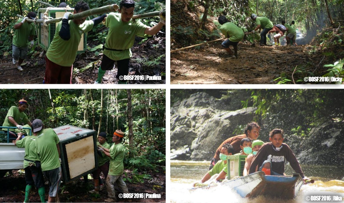 Setelah kelimanya tertidur, mereka dipindahkan ke kandang transportasinya masing-masing, kemudian dipindahkan ke dalam mobil, dan siap untuk diberangkatkan ke Hutan Kehje Sewen, di Kabupaten Kutai Timur dan Kutai Kertanegara.