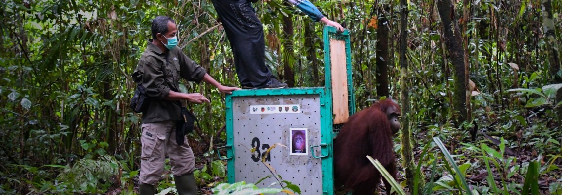 KOLABORASI KONSERVASI, TUJUH ORANGUTAN KEMBALI KE RIMBA BUKIT RAYA