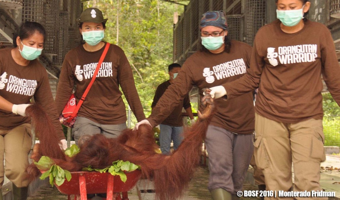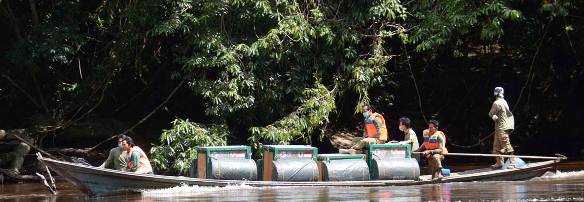 Mengangkut orangutan yang sudah dibius ke kandang transport. Pada pemberangkatan kedua, bertepatan dengan peringatan Hari Kartini, para perempuan dalam Tim Orangutan Release kami menunjukkan ketangguhan mereka dalam upaya melestarikan kehidupan Orangutan Kalimantan di habitat alaminya.