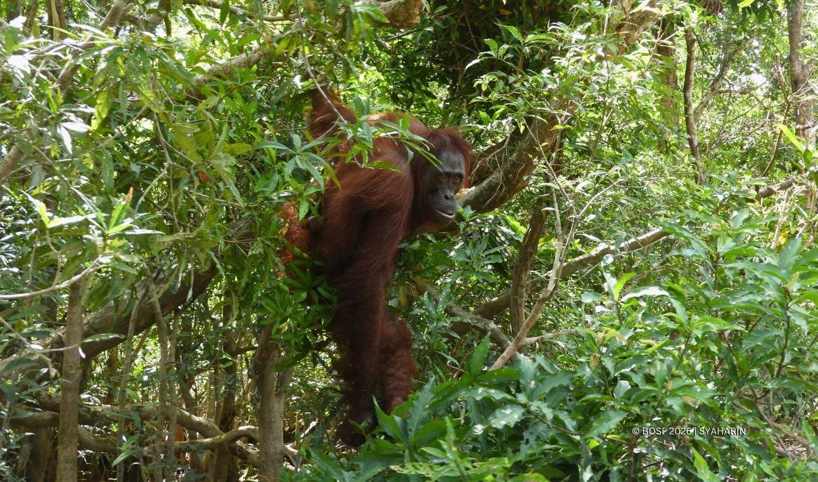 Dalam salah satu sesi pengamatan, tim observer pulau kami melihat Moza dan anaknya dalam kondisi sehat. Ia awalnya duduk di pohon pada ketinggian sekitar satu hingga lima meter sambil menikmati makan siangnya. Hal yang sama terlihat juga pada anaknya, Minho. Setelah kenyang, keduanya berjalan perlahan lebih jauh ke dalam rerimbunan kanopi dan menghilang dari pandangan.