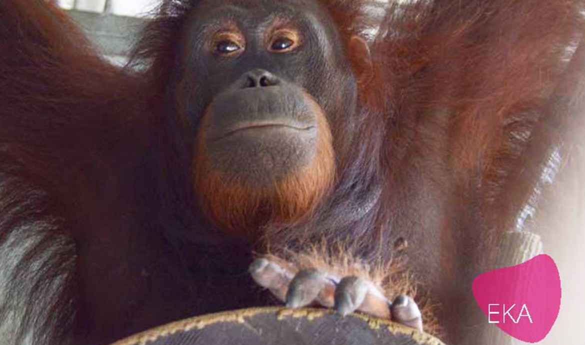 Eka diselamatkan oleh BKSDA Kalimantan Tengah dan BOS Foundation Nyaru Menteng pada 27 Januari 2004. Ia dipelihara oleh seorang warga di Mantangai, Kabupaten Kapuas, Kalimantan Tengah menjadikannya hewan peliharaan. Saat dibawa ke Nyaru Menteng, orangutan betina ini berusia 2 tahun dan kekurangan gizi dengan berat badan hanya 6,8 kilogram.