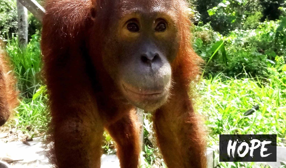 Hope merupakan orangutan jantan yang diselamatkan oleh Balai Konservasi Sumber Daya Alam (BKSDA) Kalimantan Timur dari seorang warga di Balikpapan pada 17 Oktober 2010. Hope datang ke Samboja Lestari dengan kondisi yang kritis; tidak bisa duduk dan makan. Saat Hope tiba, Pusat Rehabilitasi Samboja Lestari sangat penuh, namun Hope yang saat itu masih berusia satu tahun membutuhkan perawatan segera, sehingga kami segera menyiapkan tempat dan tim medis untuk memberikan perawatan intensif kepadanya. Dua bulan lamanya Hope mendapatkan perawatan intensif dari tim yang sangat berdedikasi, ia pun berangsur pulih dan dapat menjalani proses rehabilitasi di Sekolah Hutan.