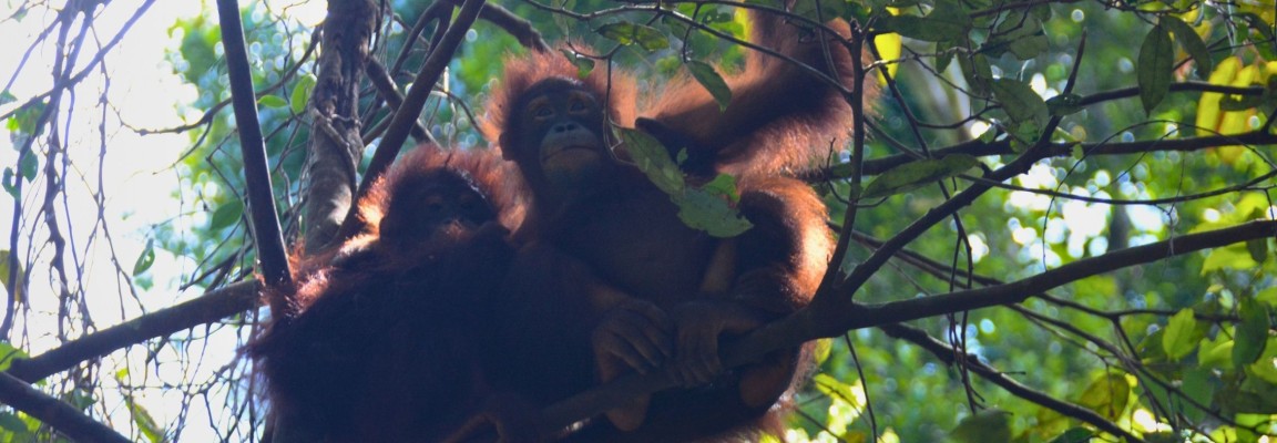 In the large-group Forest School, seven young orangutans actively play and learn together under the watchful care of our experienced surrogate mothers. It has been two months since these orphans moved to the site of the new Forest School. Despite being in a safe environment, they are still easily startled by strange sounds coming from the surrounding forest.