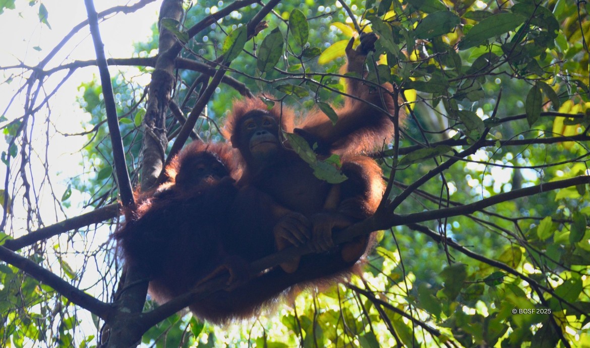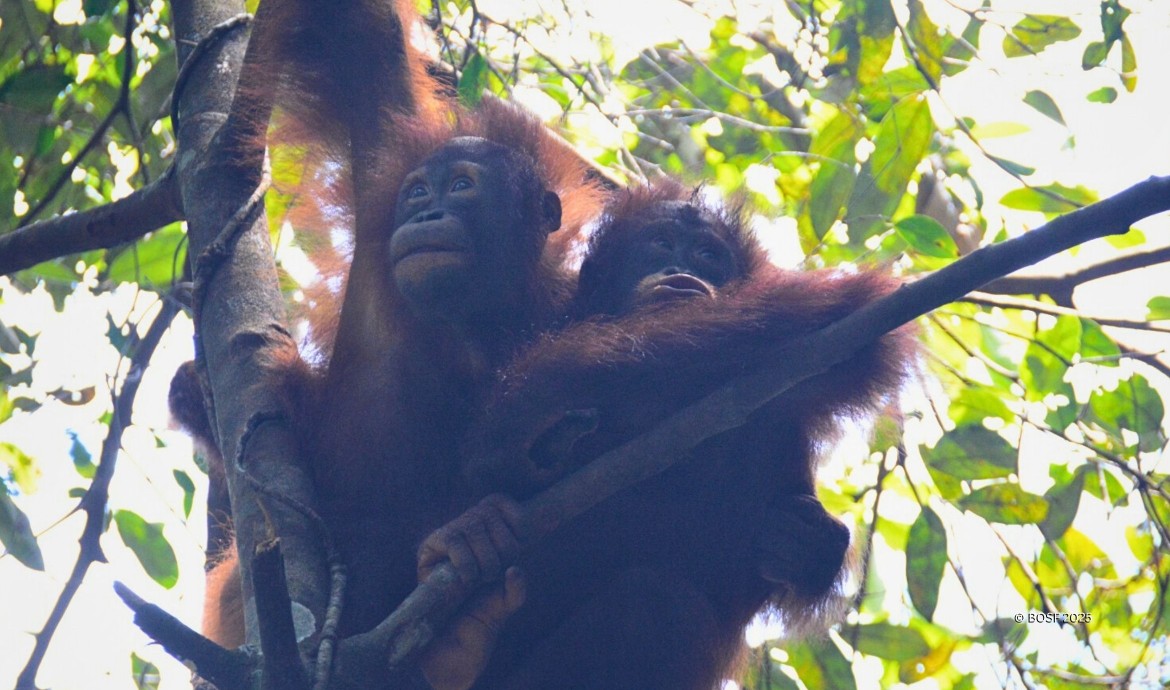 Among the seven orangutans in the group, two individuals are particularly fearful of the greater coucal’s call: Jeni and Aiko. These two five-year-old females immediately cling to each other high in the trees whenever they hear the bird’s call. They scan their surroundings cautiously, their expressions filled with concern. No one knows exactly what goes through their minds at that moment, but their surrogate mother, Haniati, speculates, "Maybe they think the sound comes from a large and frightening creature."