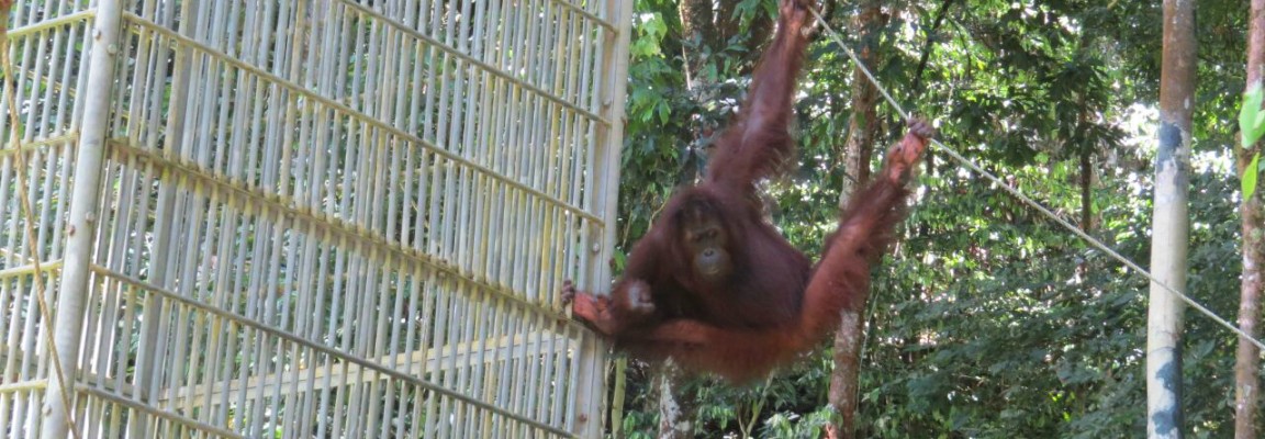 At sun rise, we depart daily on our regular patrols to track our reintroduced orangutans and see how they are getting on. This time our efforts were focused in the area of Gunung Belah and every 100 meters we stopped to check our radio tracking receiver to see if we could detect any of our orangutan signals.