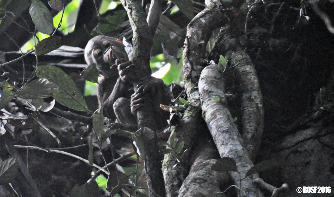 After finishing her meal, Doren took Daichi to explore the surrounding area for about two hours and then returned to the morning nest to nap together. After his mother had fallen asleep, Daichi snuck away to play in a nearby liana tree where he dangled confidently from the branches. The team were surprised to see that Daichi, while still under 12 months old, is already able to identify natural forest food! He happily snacked on young leaves in the tree while his mother dozed.