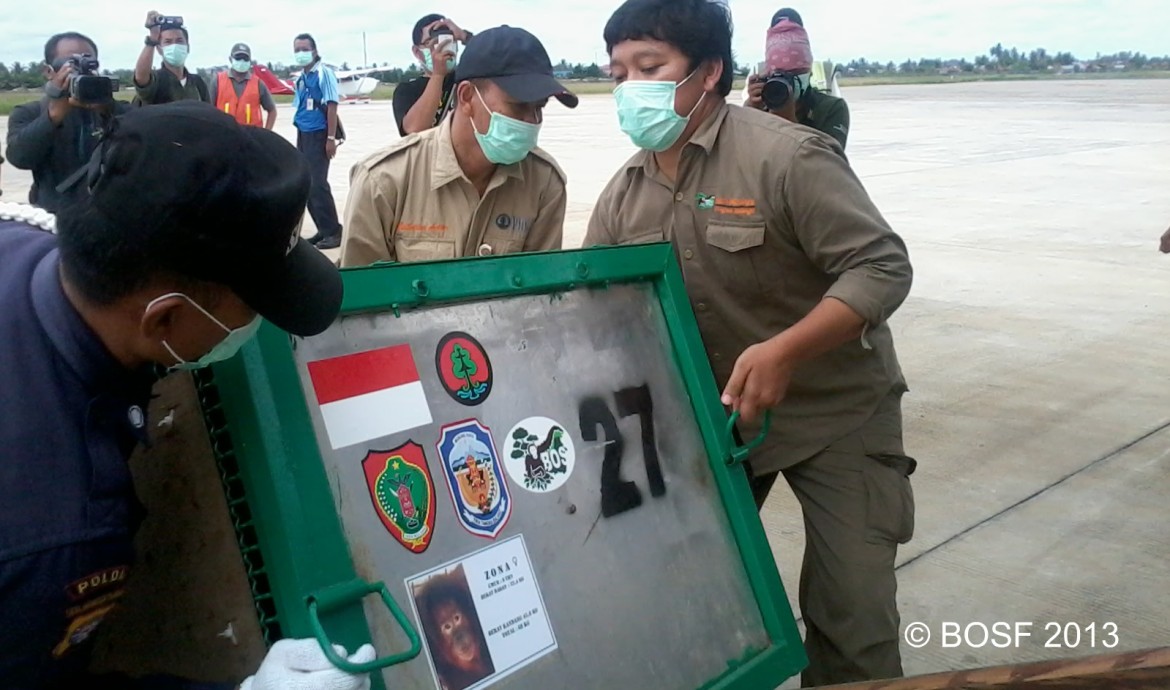 Tim kemudian meninggalkan Nyaru Menteng ketika semua orangutan telah masuk ke dalam kandang transport dan sudah dimasukkan ke dalam truk. Pesawat Twin Otter telah menunggu mereka di bandara Tjilik Riwut, Palangka Raya untuk membawa mereka ke bandara Mt. Muro, Dirung, Kabupaten Murung Raya.