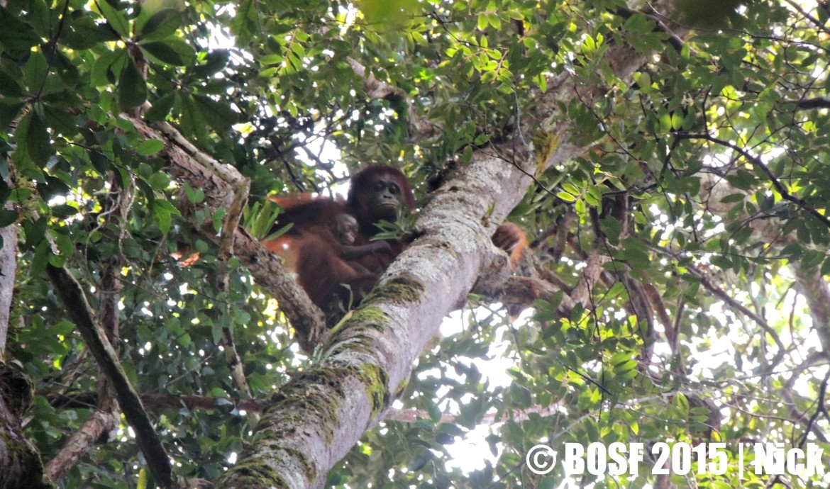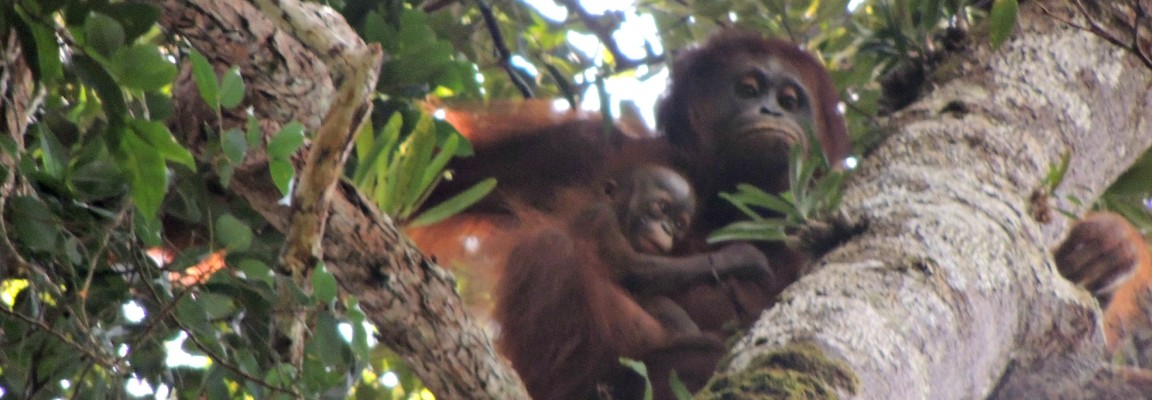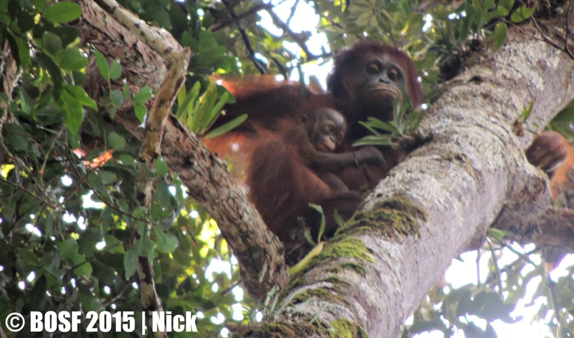 Identifying the infant’s sex (generally done the same way one would a human baby) was not possible at the moment because Kopi was very nervous and protective. But with a healthy, protective mother who has survived in this forest for over two years, there’s every reason to hope that this youngster has a long future ahead as a wild orangutan. We hope that we’ll be able to identify the infant’s sex in the near future and will update you when we do.