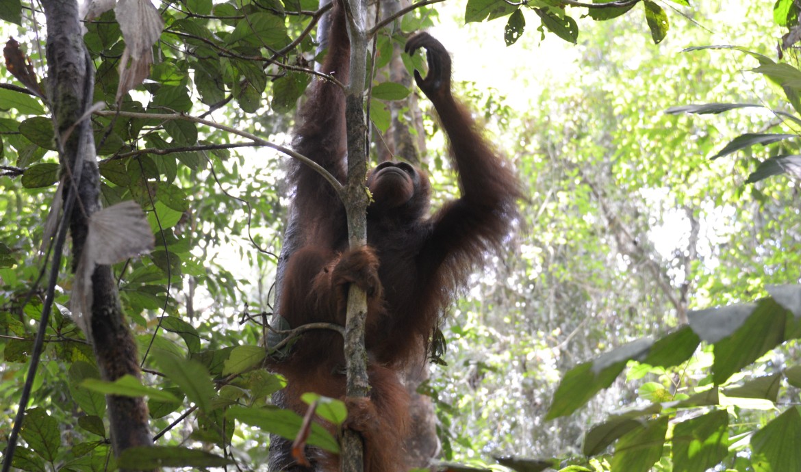 When his cage was opened, Rosidin quickly moved away from the release point and climbed straight up a tall tree. The semi-wild male easily navigated the trees and appeared to be thoroughly enjoying his freedom, feasting on leaves and shoots. He built a nest in a particularly tall tree, and stayed in the area for the first three days.