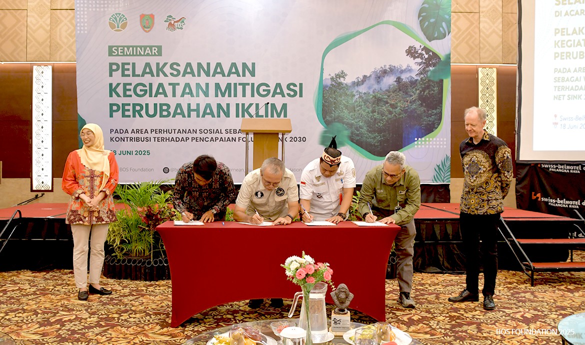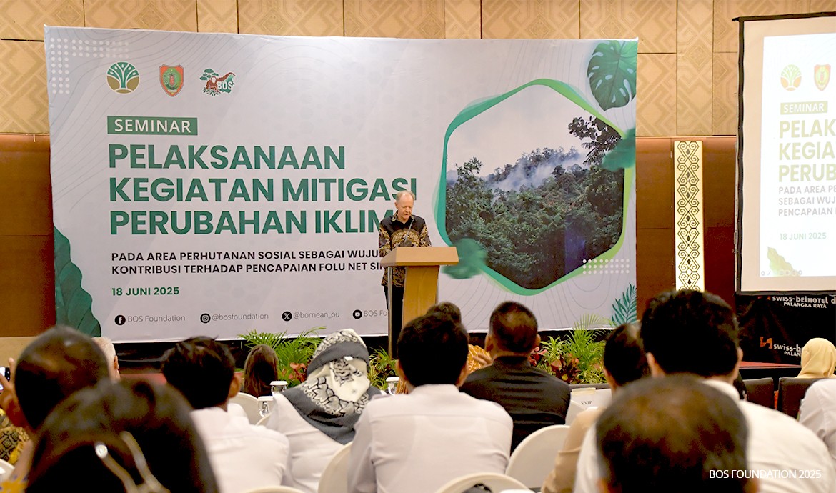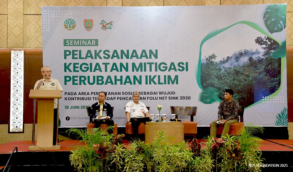 Palangka Raya, 18 June 2025 — The BOS Foundation, in collaboration with the Provincial Government of Central Kalimantan and the Ministry of Forestry, convened a seminar titled “Implementing Climate Change Mitigation Activities within Social Forestry Areas as a Contribution to Achieving the FOLU Net Sink 2030 Target.”