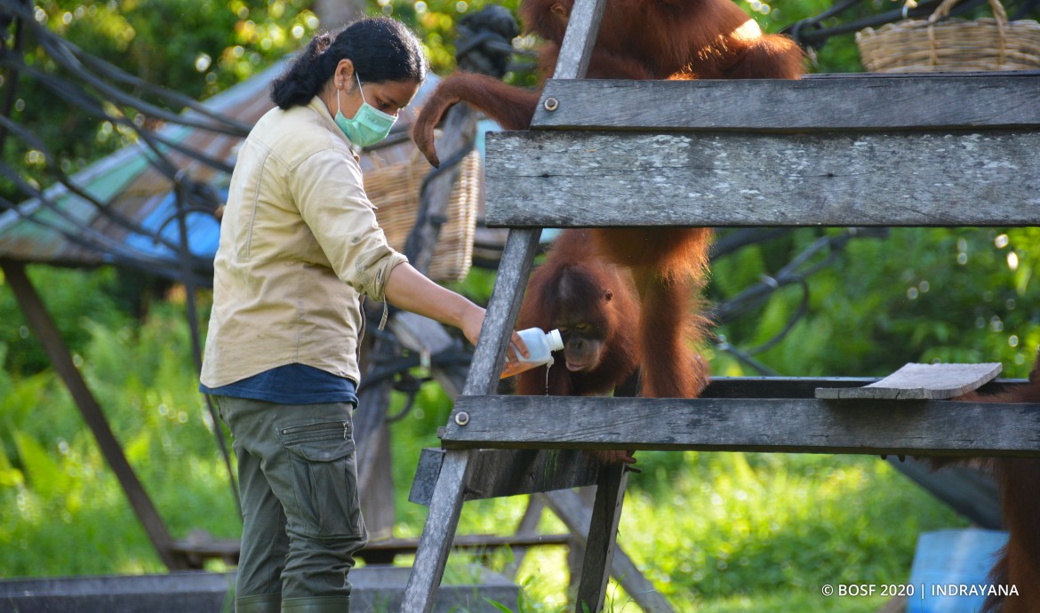 Our dedicated veterinarians, surrogate mothers, and technicians are working tirelessly to ensure that the orangutans in our centres remain safe and healthy. Their dedication and efforts contribute greatly to the very survival of this Critically Endangered species. Every one of our team members is doing their best to make sure they stay in good health and follow all safety procedures, both to protect the orangutans in their care and their own loving families waiting for them at home.