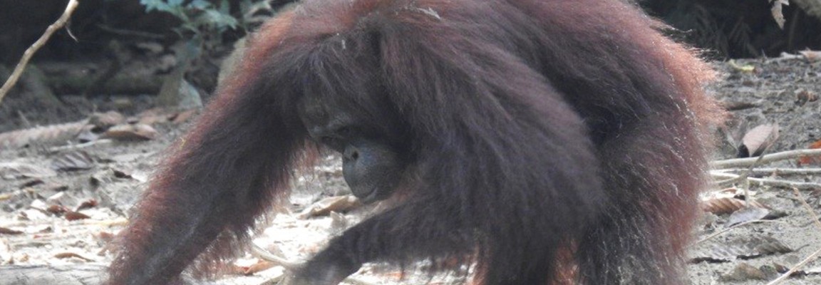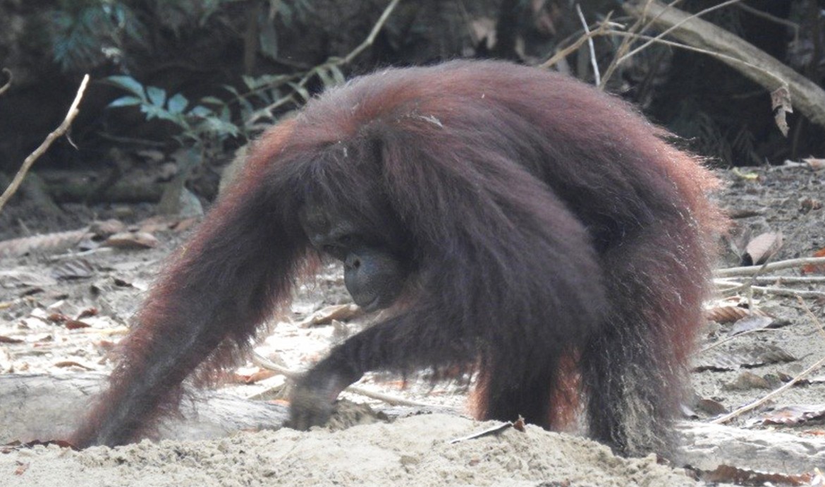 Unable to locate other orangutans in the forest that morning, our PRM team took the opportunity to observe Zakia from the other side of the river: And Zakia, did not disappoint. While normally an uptight and intimidating presence, Zakia appeared to be carefree on this occasion and was enjoying her surroundings. She rolled around on the sand and also played with it. She executed a few somersaults, then sat for a moment, staring at the sky. She looked as though she was in a total state of peace. After some time, she swung off through the vines and whipped around in the air as she moved from vine to branch. Zakia seemed to be having the time of her life! This was a thoroughly enjoyable experience for our PRM team members, especially since it is uncommon to witness Zakia in such a joyful mood.