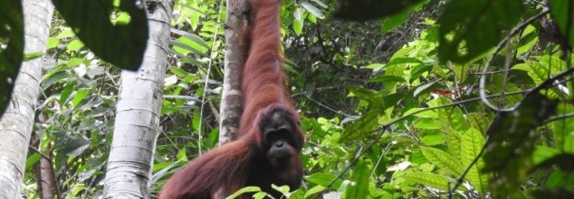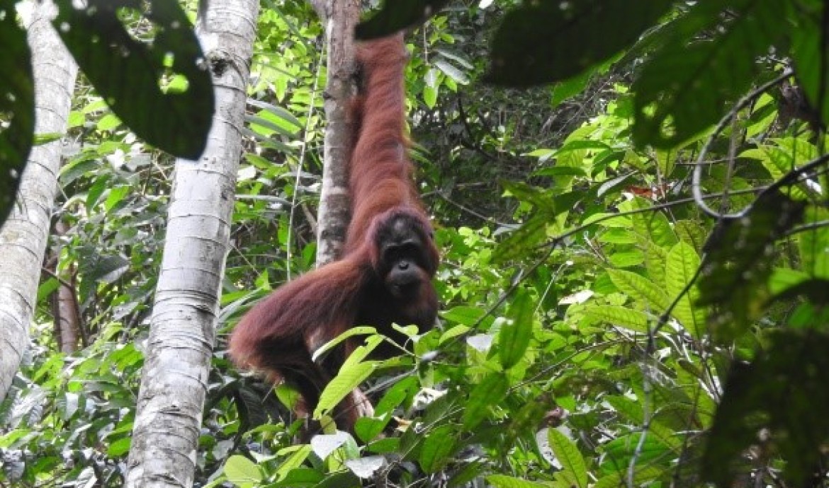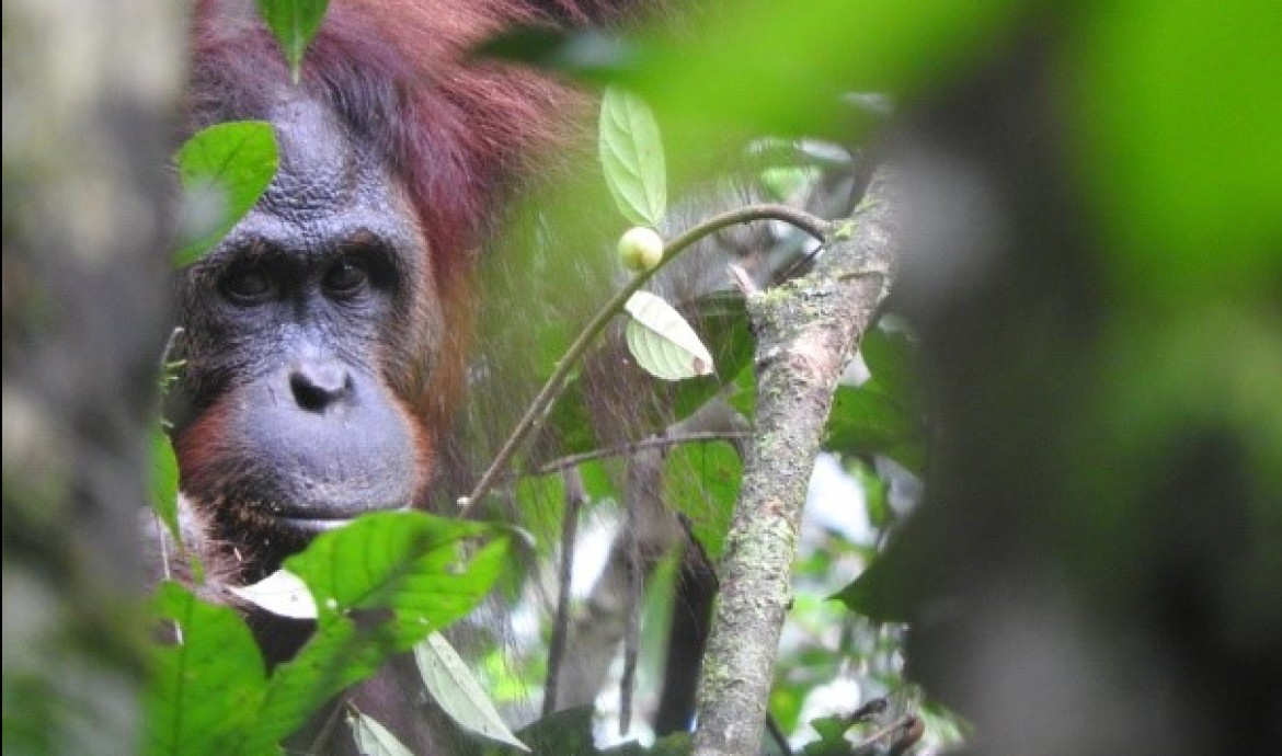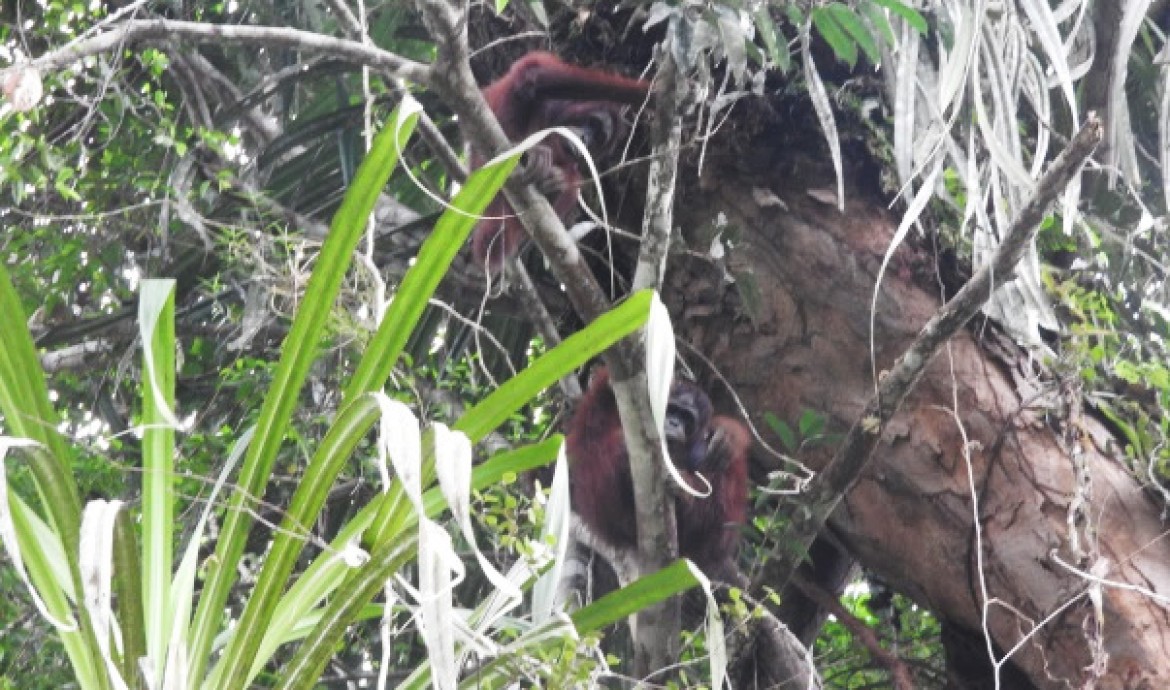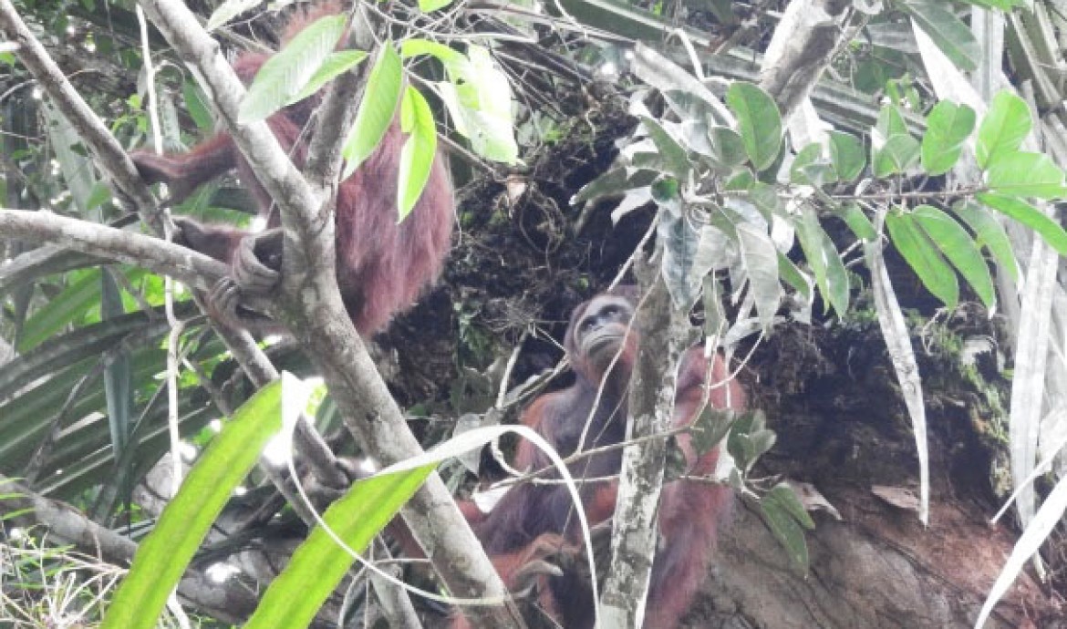 Our Post-Release Monitoring (PRM) team in the Bukit Baka Bukit Raya National Park, Central Kalimantan was recently conducting a routine patrol, when a strong signal was detected from Janu, a 9-year-old male released in February 2017. The team followed the signal and found Janu sitting atop a tree, busily eating ficus fruits. Blissfully unaware of the PRM team’s presence, he continued to slowly move around the trees and forage for forest food.