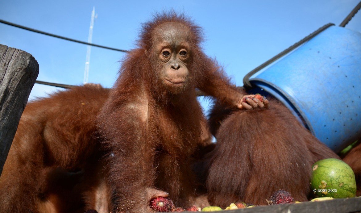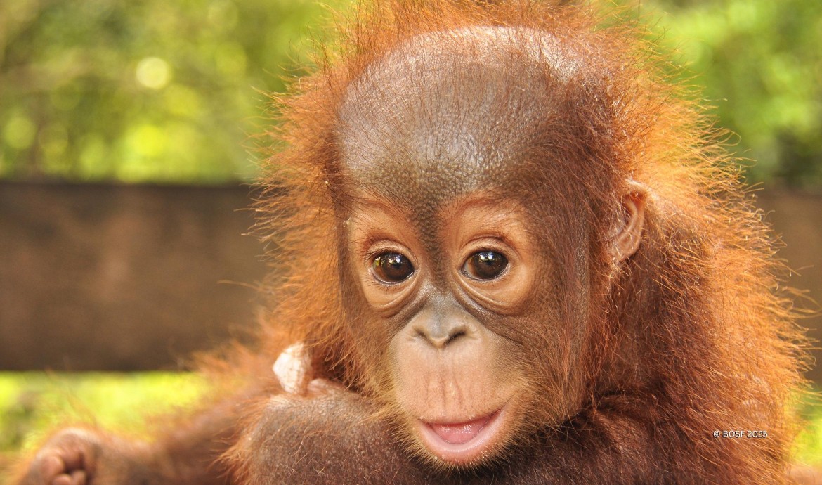 In 2013, just two days after the rescue of another orangutan named Cinta, a car pulled up at the Nyaru Menteng Orangutan Rehabilitation Centre carrying a young male orangutan from Dusun Manggana village, Seruyan District. The villagers had contacted the BOS Foundation after caring for the infant for about a month. According to one resident, he had discovered the orangutan while working in his small oil palm plantation. From his hut, he had seen a mother orangutan and her baby separated by some distance. Alarmed, he and his hunting dogs approached them. The frightened mother fled into the forest, leaving her infant behind. The baby’s terrified cries prompted the farmer to take him home.