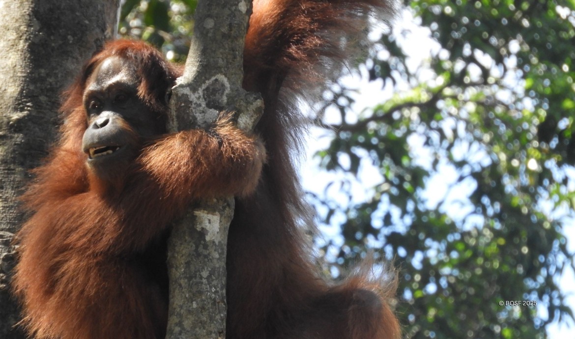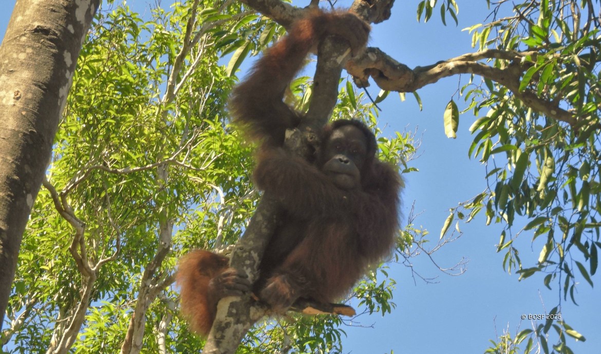 Later that year, Jumbo was transferred to Kaja Island. Over time, he became increasingly wild and elusive, eventually avoiding contact with our monitoring team. This behaviour is typical of orangutans on pre-release islands, where they often explore multiple islets. Months later, Jumbo reappeared at a feeding platform, but his condition had deteriorated. Malnourished, he was transferred to the Nyaru Menteng Clinic in September 2022 for recovery. There, he received nutritional supplements and enrichment food, slowly regaining his strength.
