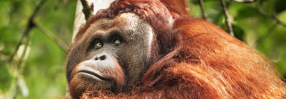 As Tukijo and I trekked into the dense undergrowth, an orchestra of birds, insects, and primates began to crescendo throughout the forest. The jungle was awakening. Guided by our trusted GPS, we approached Kisar’s night nest, and just in time, the trees had begun to sway, straining under an enormous weight. A huge figure draped in long red hair vaulted itself through the canopy. It was breakfast for the handsome flanged male and a fruit, known locally as Tapang, was on the menu. The gentle giant perched in the trees and gorged on the ripe, succulent fruit. I sat on a log whilst collecting data and listening to the masticating sounds of this content creature.