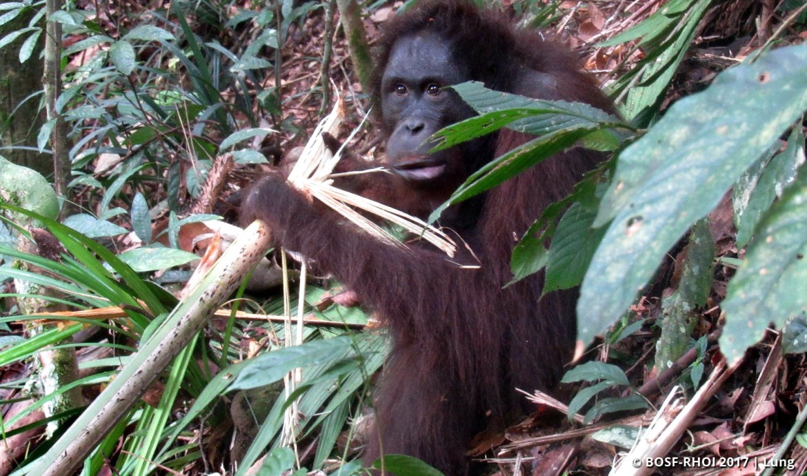 The team conducted nest-to-nest observations on Leonie over several consecutive days, and noted she was feeding well. She spent a lot of time foraging and consuming natural foods, in particular young liana leaves, and Lithocarpus, Etlingera, and Calamus plants. She actively moved through the trees to forage, and only climbed down to ground level when she wanted to pick and eat shoots.