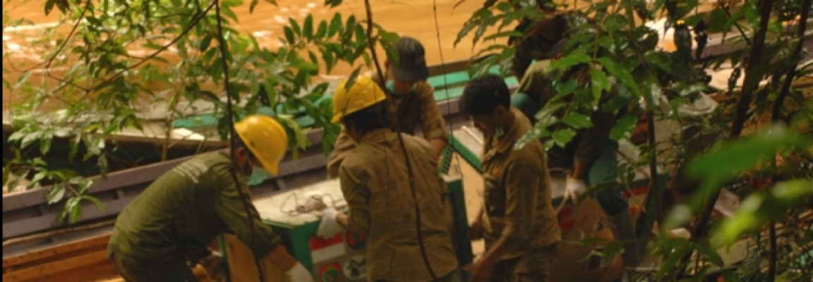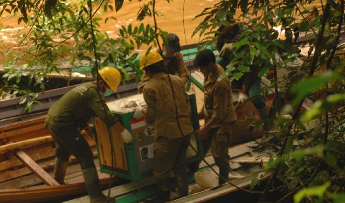 Unlike yesterday, the weather wasn’t good this morning and the rain started heavily at 7 am. Thankfully the first trip carrying six orangutans arrived in Batikap at 11:30 am, but at that point the pilot was unsure whether he could manage the second trip or not.