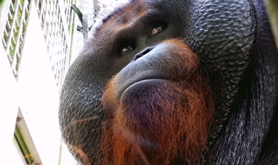 Rehabilitant orangutans are those rescued at a young age and/or confiscated from people who have illegally kept them in captivity.