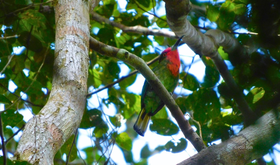 According to the International Union for Conservation of Nature (IUCN), the Red-bearded Bee-eater is currently listed as Least Concern (LC). While it is not considered globally threatened, its population is affected by habitat loss due to deforestation, land conversion, and logging activities. Protecting forest ecosystems like TNBBBR is therefore crucial for ensuring the survival of this and many other forest-dependent species.