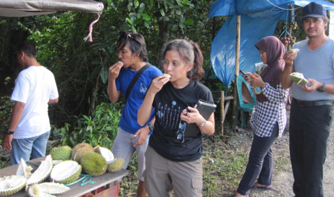 It normally takes around 2 hours from Palangka Raya to Kapuas, but it took us longer (3 hours) as we often stopped along the way to buy durians (Durio kutejensis), mangosteens (Garcinia mangostana) and rambutans (Nephelium lappaceum), which are currently in season. We also bought some corn on the cob that we planned to roast for late night snacks.