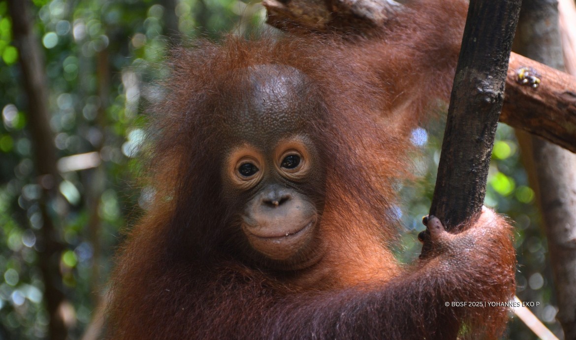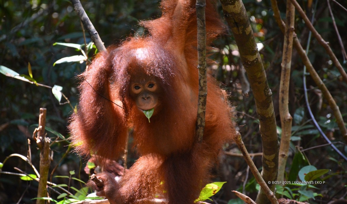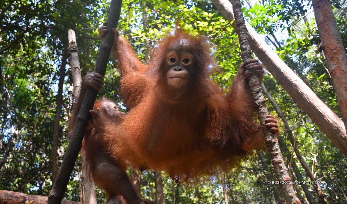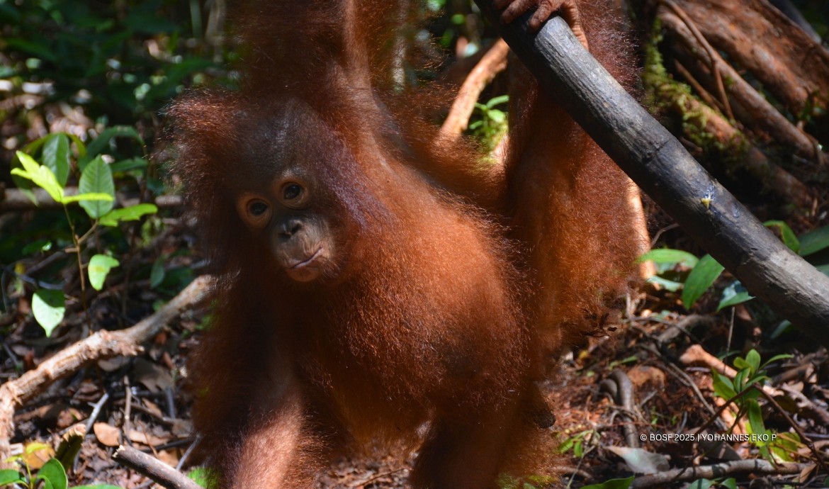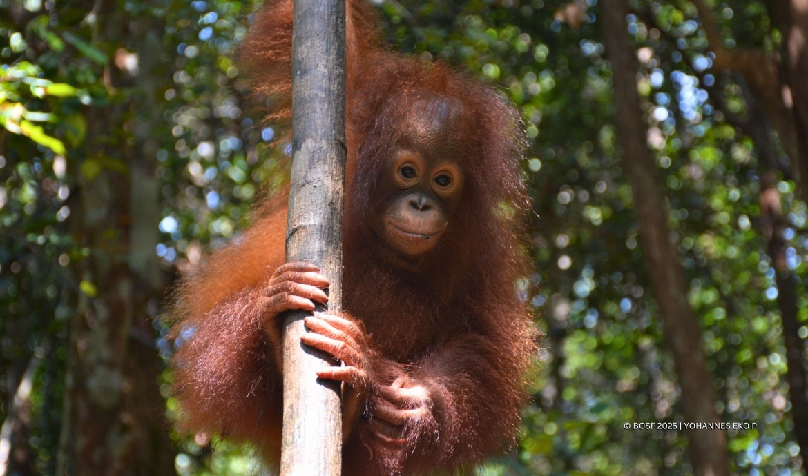 Since May 29, 2025, Selfie, a young female orangutan, has officially joined the small group at the Forest School of the Nyaru Menteng Rehabilitation Centre. At first, she was accompanied by Rumba, her little companion who had also been in the nursery group. Rumba’s presence brought comfort to Selfie, especially after Iqo was promoted to the larger group.