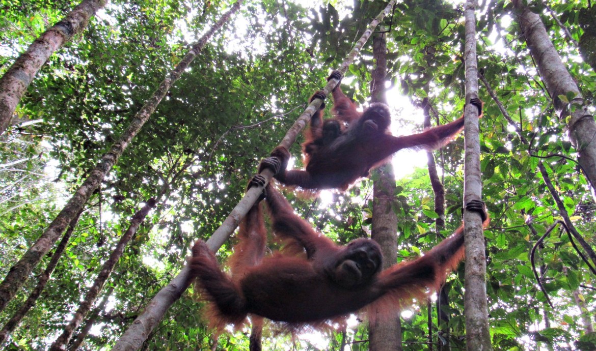After being ‘officially’ accepted, the wild male then accompanied Ajeng wherever she went. We hope interactions like this will give Ajeng the chance to become a mother, and follow in the footsteps of Yayang and Lesan; two previously-released female orangutans who have since given birth in the Kehje Sewen Forest.