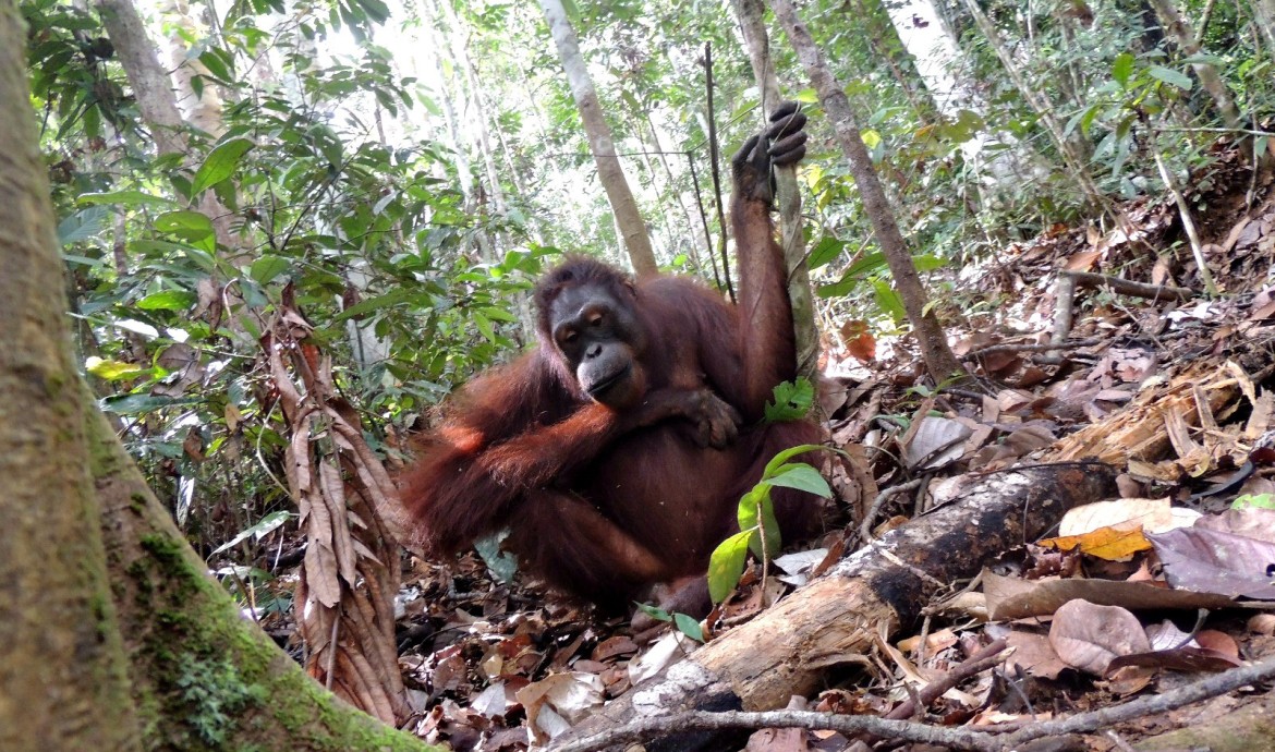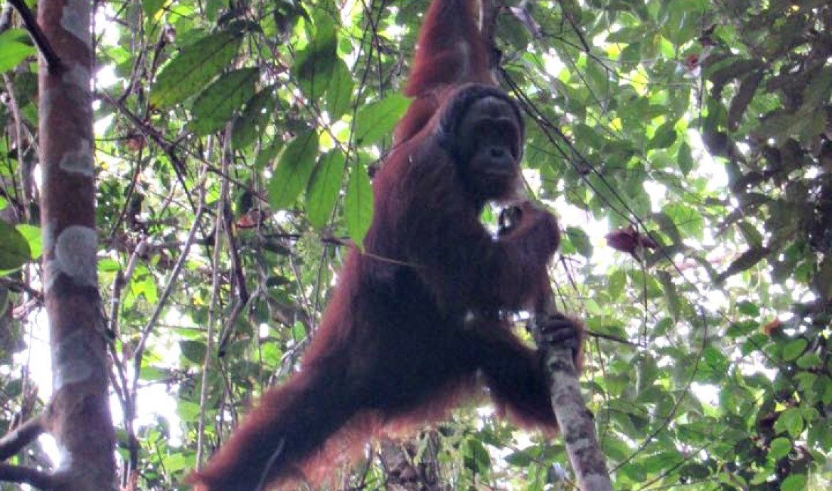 In response to his approach, Ajeng quickly climbed down the tree to forage, then climbed back up a different tree to eat high up in the branches.